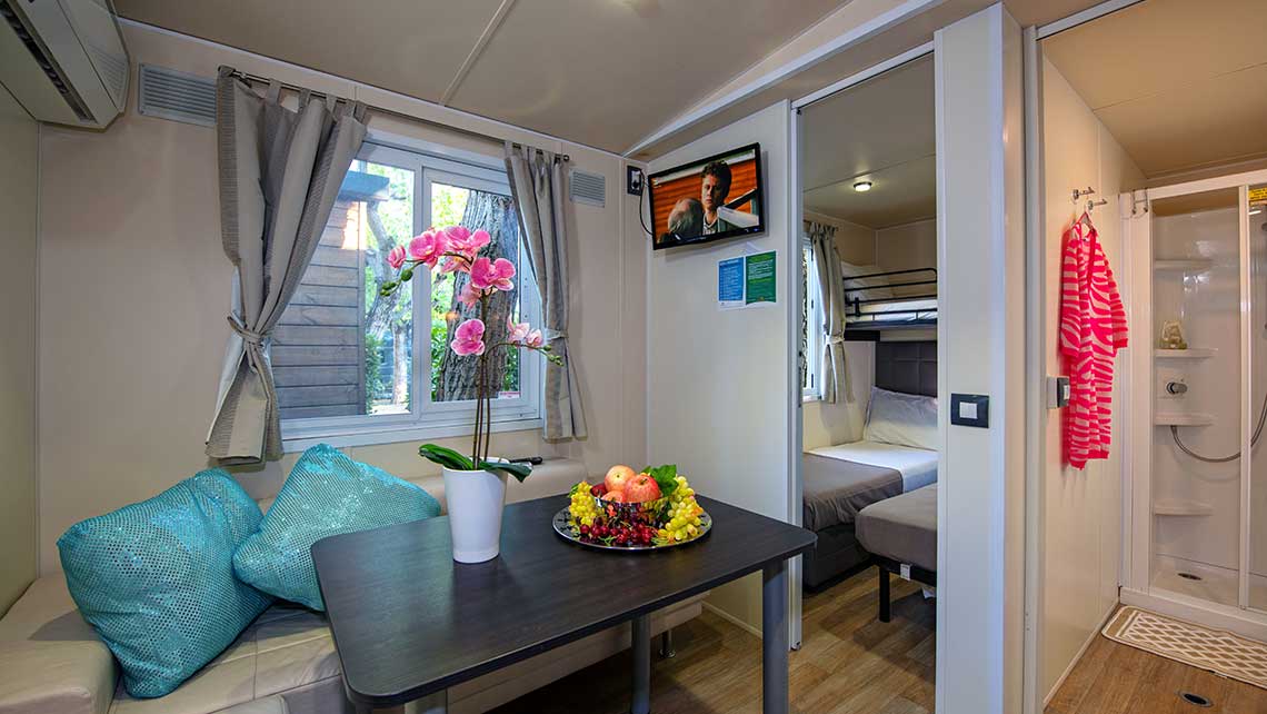 Auf Camping Riccione haben wir eine große Auswahl an Mobilheimen. Entdecken Sie sie! Sie werden sicherlich das Passende für Ihren Urlaub finden