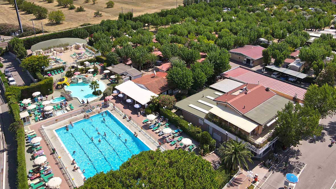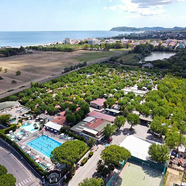 A modern tourist complex, the only 4 star camping in Riccione, located in the green heart of Riccione 300 metres from the sea, 1.2 km from the Thermal Baths and 2 km from the city centre. You can get to the city centre by public transport or by the campsite’s free shuttle train.